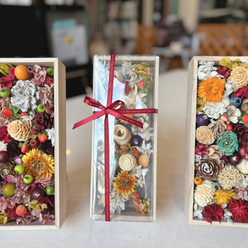 秋の生花アレンジ/木の実やドライフラワーなどを詰め込んだBOXアレンジ11月テーマ: